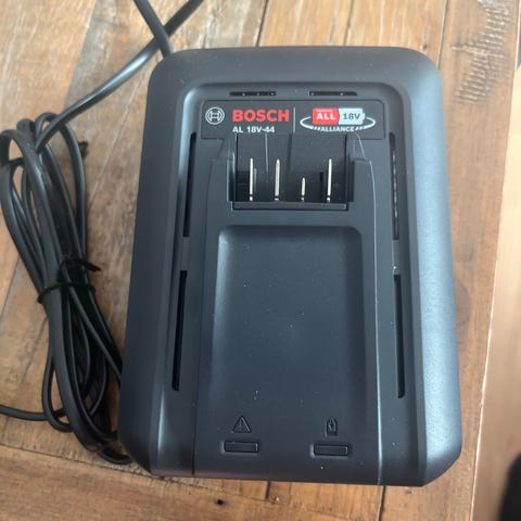 Setet består av en nätansluten laddare och två uppladdningsbara batteripack.