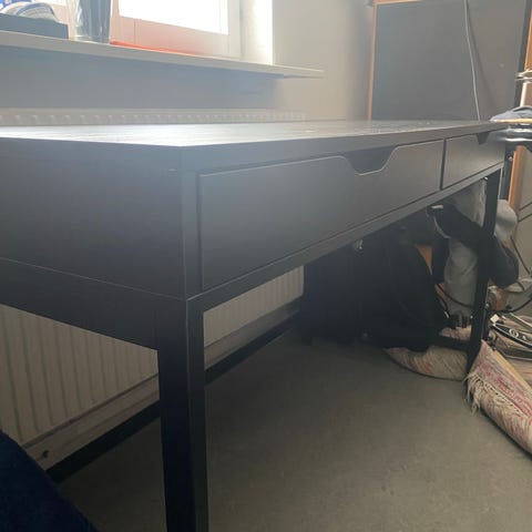 Har använts som pysselbord och finns synliga tecken på användning, men inte trasig på nåt sätt