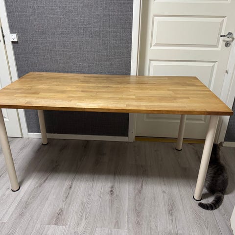 Stabil konstruktion, står stadigt utan att vicka. Iläggsskivan är integrerad och enkel att fälla upp vid behov. Bordet är i fint begagnat skick.