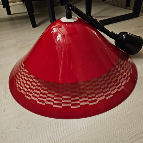 Retro taklampa i mässing med grön glaskupa 1990-tal kulturell karaktär