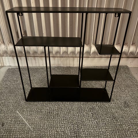 Modulär vägghylla med 5 hyllor i grått. Stilren och flexibel – kan monteras i olika konfigurationer. Hämtas på kungsholmen