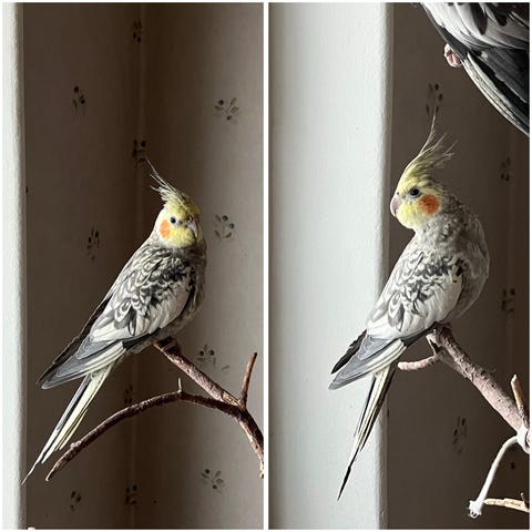 Mer självständig hane som inte är handtam. Har en väldigt fin, ljus och klar sångröst och sjunger ofta.