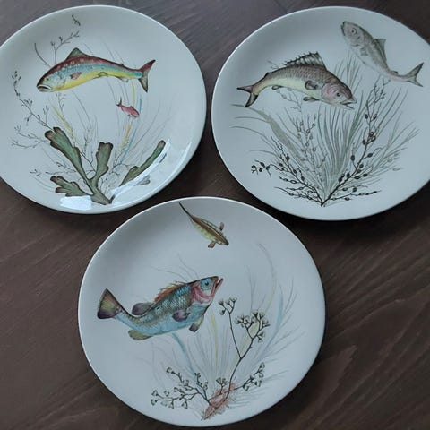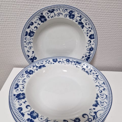 Fyra tallrikar i stengods från STUDIO BROWN. Tallrikarna är tillverkade i England. Färgerna är underglasyr, diskmedel och diskmaskinssäkra. Varje tallrik har en diameter på 19 cm.