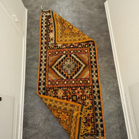 Den här mattan bär på historia, hantverk och hjärta – ett unikt exemplar som ger värme och personlighet till vilket rum som helst.
