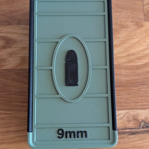 En robust ammunitionslåda för .458 Winchester Magnum. Rymmer 20 skott.
