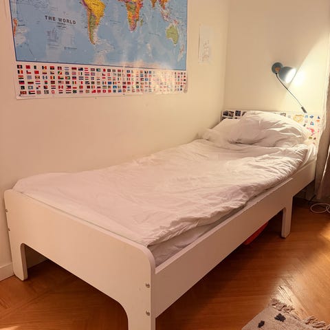 IKEA Släkt med tre stora förvaringslådor. Använd av ett barn. Bra skick. Ribbotten ingår, men ej madrass. Hämtas i Vallentuna.