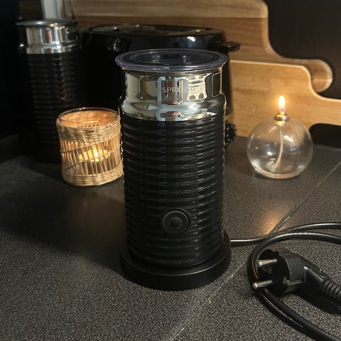 Nespresso mjölkskummare i svart utförande. Elektrisk mjölkskummare med sladd för användning på köksbänk.