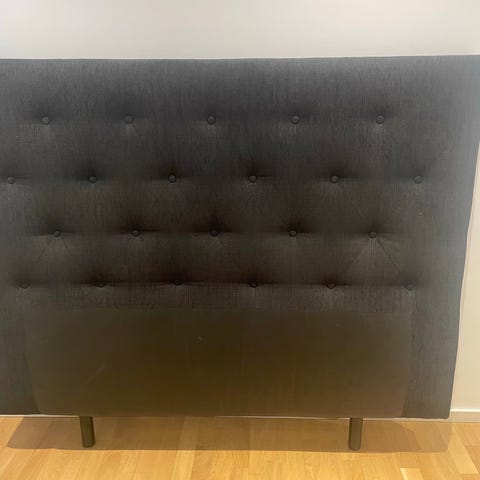Säljer en vacker och unik sänggavel i trä med två vackra rundade ovandelar och vertikala räfflade detaljer. Stadig konstruktion och ljusmålad i en varm, neutral ton som passar de flesta sovrum.