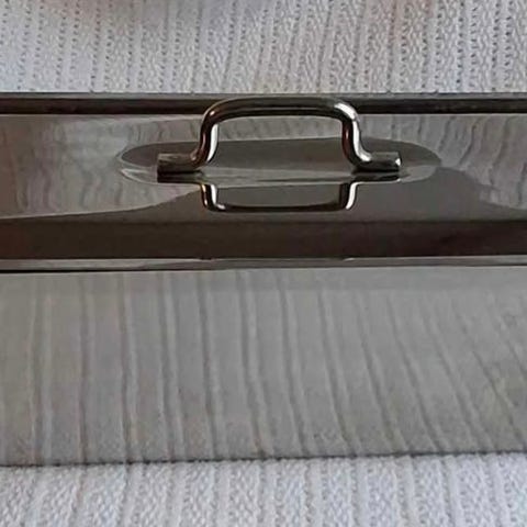 Rostfri fiskgryta med lock och perforerad insats. Avlång form med handtag på sidorna och på locket. Insatsen har hål för ångkokning eller avrinning och kan lyftas ur grytan. Passar för tillagning av hel fisk eller andra avlånga livsmedel på spis.