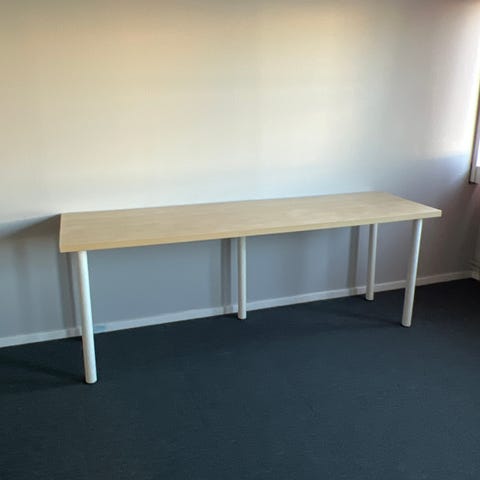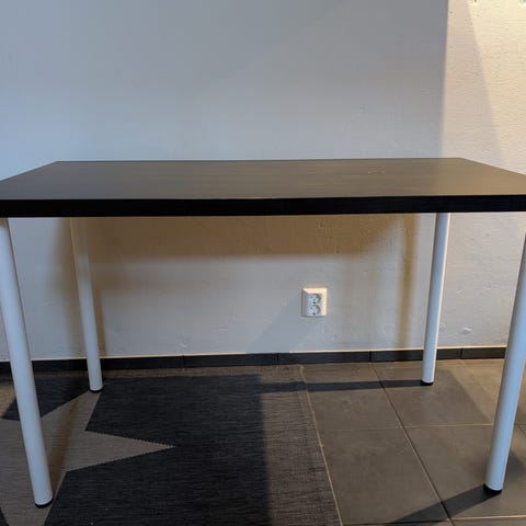 Svart skrivbord med gott om utrymme. Normala bruksspår.
