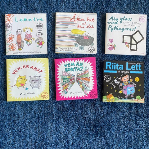 Div barnböcker skänkes. Div slitage i kanterna men hela. Kommer från ett djur och rökfritt hem. Hämtas i Forsa eller Hudiksvall.