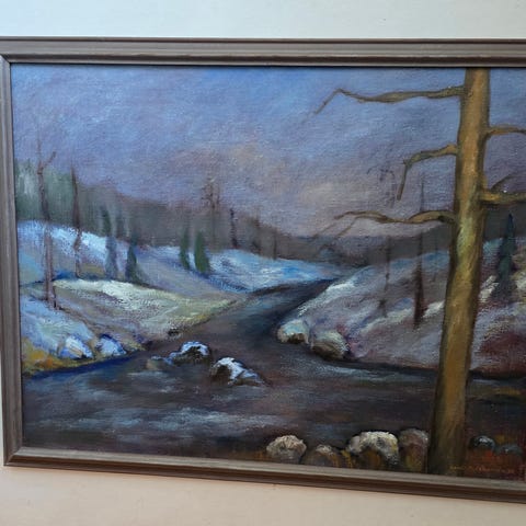 Ge hemmet eller kontoret en tidlös elegans med denna vackra målning i olja. Tavla med landskapsmotiv föreställande en skogsdunge med bäck eller vattendrag. Färgerna domineras av olika gröna nyanser, brunt och blått. De djupa, levande färgerna mot den mörka bakgrunden skapar ett både dramatiskt och harmoniskt uttryck som fångar blicken. Tavlan passar perfekt i allt från moderna vardagsrum till klassiska matsalar och ger rummet en känsla av värme, liv och exklusivitet.