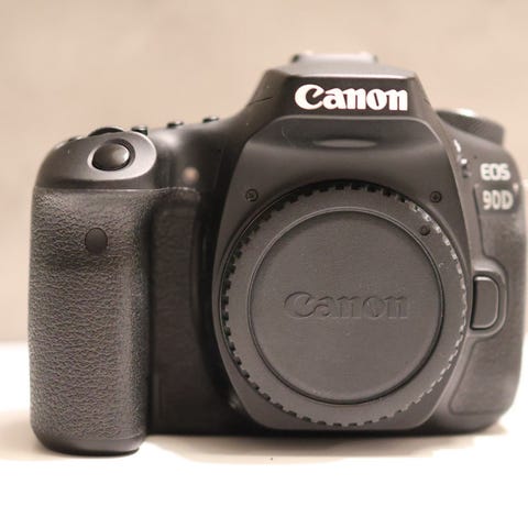 Canon EOS 90D systemkamera med utbytbart objektiv. Kameran är en digital spegelreflexkamera (DSLR) med Canon EF/EF-S-fattning. På bilderna syns kamerahus med monterat Canon-objektiv, kamerarem, laddare och kameraväska. Lämplig för stillbildsfotografering och videoinspelning i olika miljöer. Passar användare som vill ha en kamera med optisk sökare, manuella inställningar och möjlighet att byta objektiv efter behov.