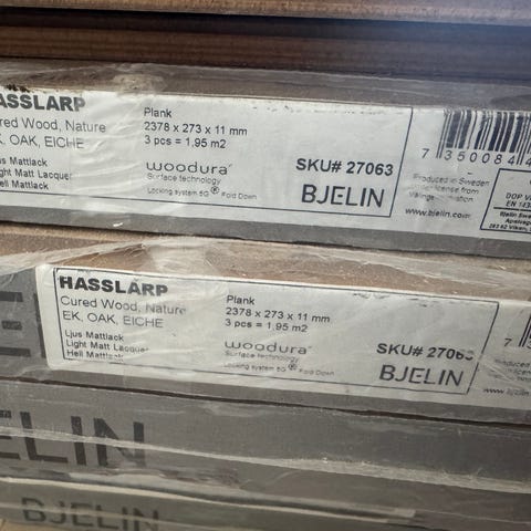Säljer 13 stycken oöppnade paket av Bjelin Fleninge (Rustic Oak). Detta är ett härdat trägolv med Woodura®-teknologi, vilket gör det flera gånger starkare än vanlig parkett.