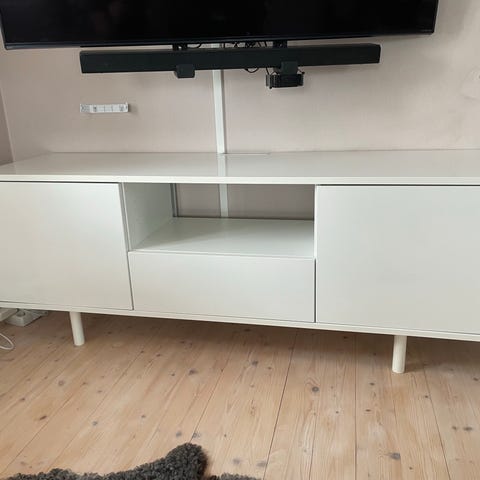 Tv-möbel med två förvaringslådor. Vit med detaljer i oljad ek. Mått 1700x430x500.