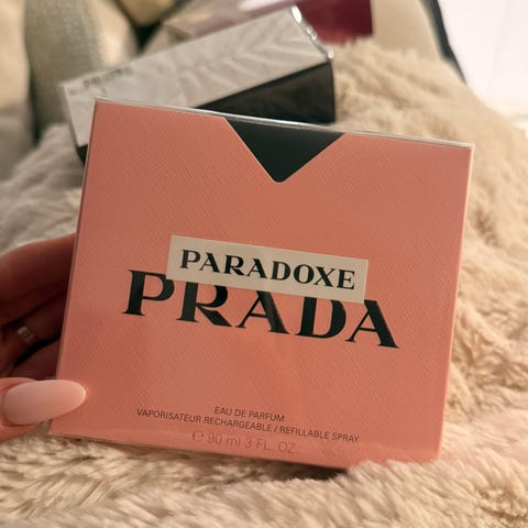 Prada Paradoxe eau de parfum. Flaska i grön nyans med tillhörande kartongförpackning i matchande färg. Passar som doft för vardag eller fest. Storlek och exakta doftnoter framgår inte av bilden.
