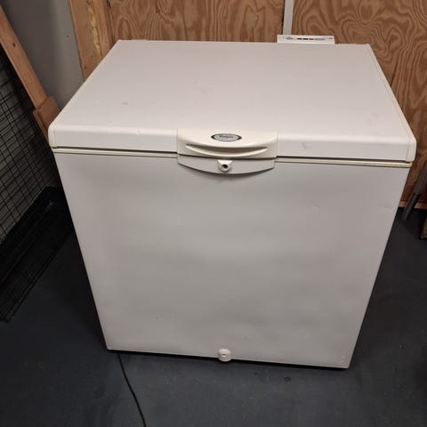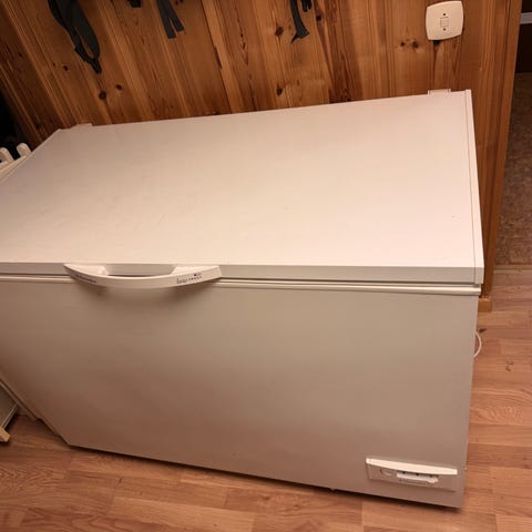 Electrolux frysbox i vit färg. Klassisk toppöppnad modell med invändig belysning och manuell temperaturreglering via vred på fronten. Utrustad med indikatorlampor för drift och larm. Invändigt finns trådkorg och öppet utrymme för förvaring av frysta varor. Passar för placering i kök, grovkök eller förråd där extra fryskapacitet behövs.