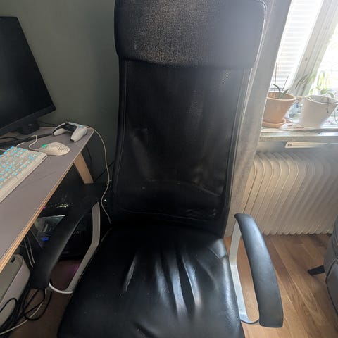 Arbetsstol med sits och rygg i blått och underrede i vitt. Perfekt för hemmakontoret eller barnrummet.
