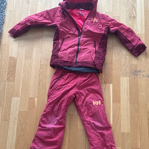 Säljer jacka + byxor i strl 152/12. Synligt använt men ingen påverkan i funktionalitet. Skickar med en svart Everest Fleece på köpet.
