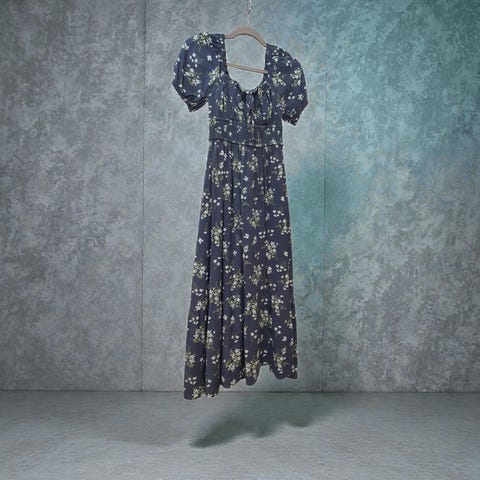 ONLY sommarklänning för dam i storlek S. Klänningen är blå med blommigt mönster och är tillverkad i polyester. Modellen har korta ärmar och knäppning framtill. Passar som lätt och luftig klänning under varmare dagar.