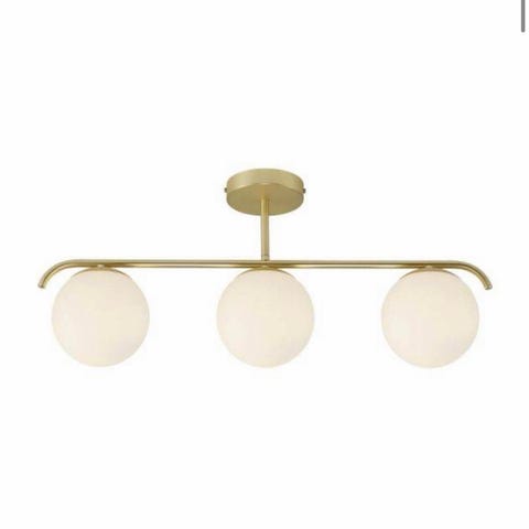 Taklampa i mässing/vit från Opviq Dagmar. Helt ny och oanvänd, ligger fortfarande förpackad i sin kartong. Köptes med tanke att användas men har blivit liggandes.