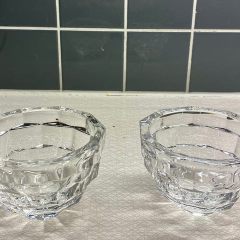 Kosta Boda ljuslyktor. Ett litet märke på insidan på den ena som inte syns utifrån. Kontant betalning.