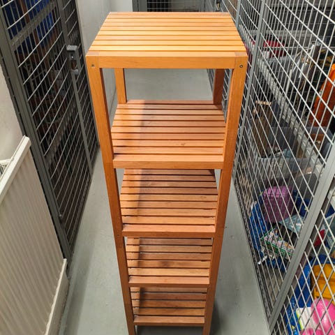 Hyllställ i bambu från IKEA ”Rågrund”. Mått 37x37x104.
