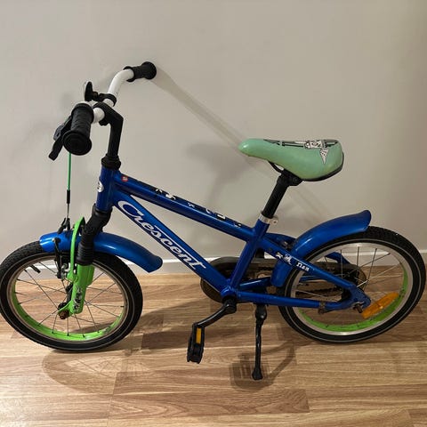 Merida J16 barncykel med 16" hjul. Cykeln har blå ram med kedjeskydd och reflexer på hjulen. Utrustad med handbroms fram, stöd och skärmar. Passar som första cykel för barn som växt ur balanscykel och vill cykla självständigt på kortare turer och till vardagslek.