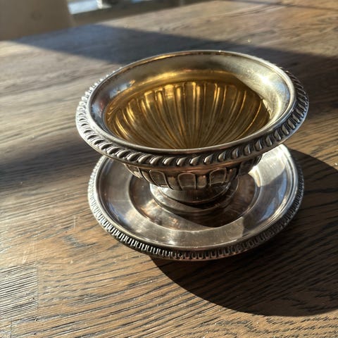 Trevlig silverskål/fat på fot. 12 cm hög och 19 cm i diameter