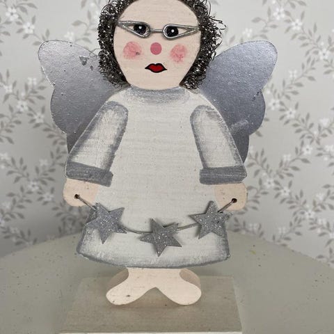 Liten söt olje-/akrylmålning med ängel av konstnär Annika Strömberg