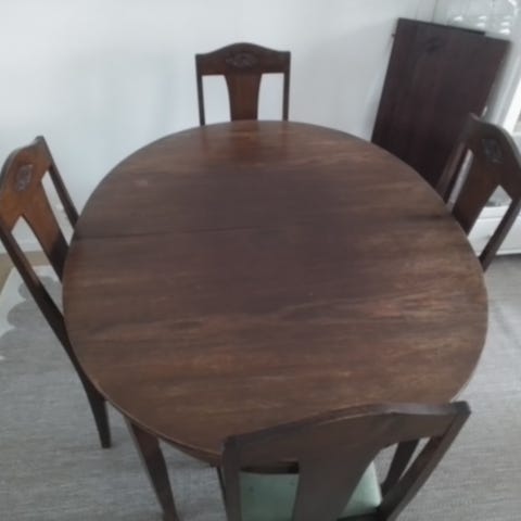 Hej! Hjälper svärmor att sälja middagsbordet inför kommande flytt för en billig peng. Priset motsvarar inte alls bordets fina pristina skick överhuvudtaget. Inga repor och skinnet på stolarna är inte ens slitet. Finns hiss vid hämtning. Ta med några skruvmejslar för att lossa skivan enkel. Extra iläggskivor följer med. Finns i villastan. Skriv till mig så löser vi det enkelt. Priset var tidigare 700kr på FB men nu sätter vi priset istället för 400kr. Bordet behöver en ny ägare så priset är inte vi har fokus på. / Micke