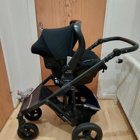 Britax barnvagn liggdel och sittdel i svart tyg.