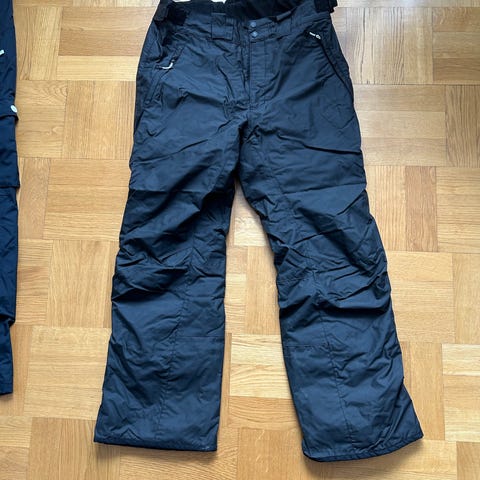 Svarta skidbyxor från North Bend med hängslen. Byxorna har resår i midjan och justerbara hängslen. Byxbenen har North Bend-logotypen tryckt på sidan.