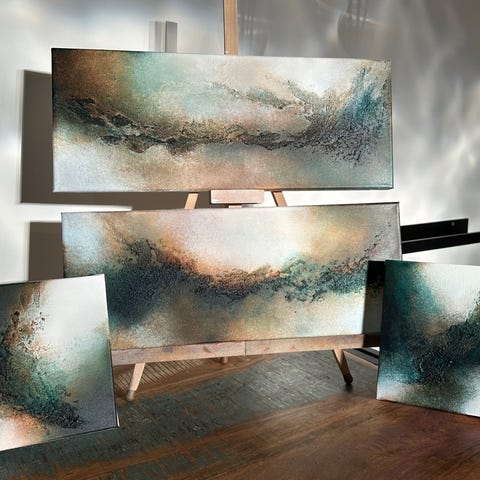2 st abstrakta tygtavlor, 80x80 cm, nya!