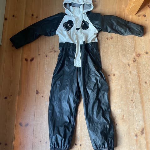 - Storlek 110, fodrad regnoverall från Ellos, panda, använd men i gott skick, 100 kr, fothällor finns