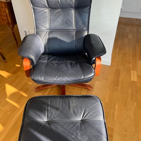 Fåtöljen är av den större varianten och man kan ledigt sitta 2 st i den , går att ha som extrasäng / schäslong / liggsoffa / mini soffa
