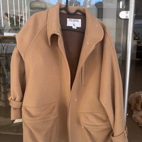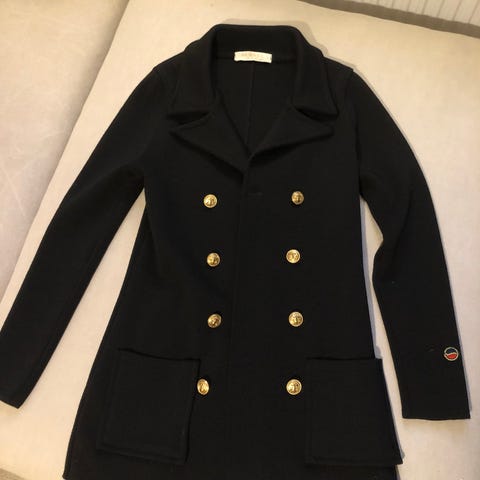 Busnel kappa för dam i beige färg, storlek S. Ytterplagg i ull med dubbelknäppning framtill och dekorativa knappar. Modellen har krage med slag, två utanpåfickor fram och rak passform. Passar som vardagskappa eller lättare ytterplagg under svalare dagar.