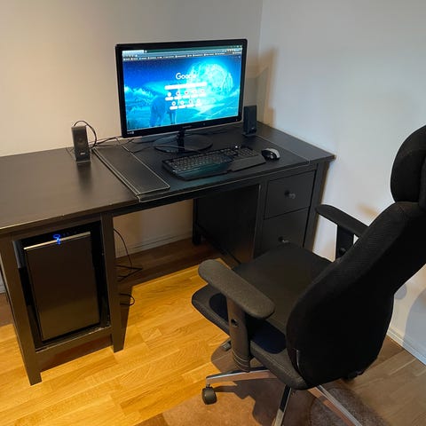Duronic utdragbar tangentbordshylla i svart färg. Mått 28x67 cm. Monteras under skrivbord och ger extra plats för tangentbord och mus. Hyllan löper på skenor som gör det möjligt att skjuta in och ut den vid behov. Passar vanliga skrivbord där det finns utrymme för montering under bordsskivan.