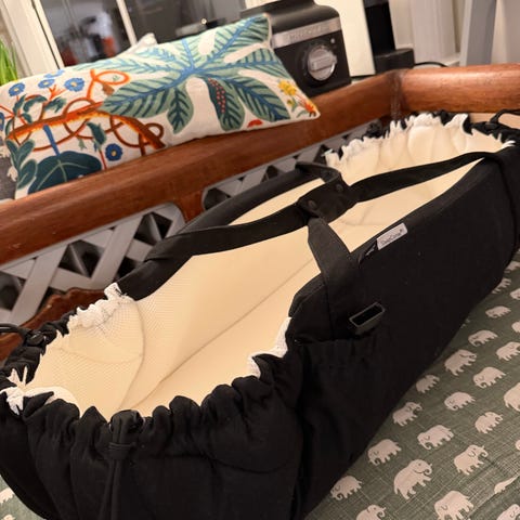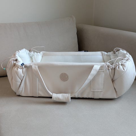 En grå najell sleepcarrier med madrassskydd. Fint skick.