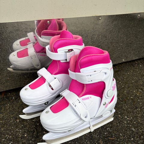 Utrustade med bekväm kardborrestängning och snörning. Lätt att justera storleken med knapp på sidan. Skridskorna är slipade.