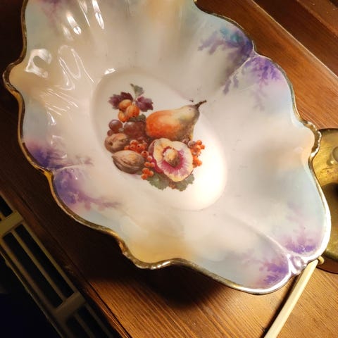 6 assietter, ett uppläggningsfat och en skål.