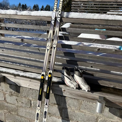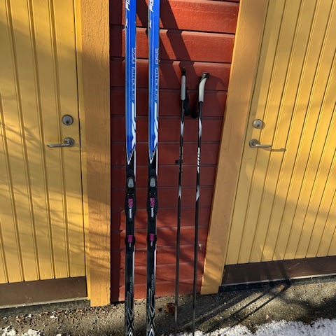Allt är i bra begagnat skick (förutom stavarna som endast använts vid en skidresa och är i nyskick) och finns i Sticklinge, Lidingö. För att kunna avgöra om skidorna passar/har lagom spann får man gärna komma och prova.