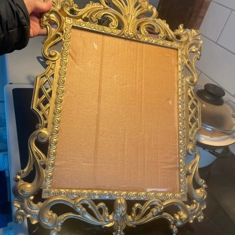 Äldre tavelram ram i guld. Kraftig och gedigen kvalitet i trä! Ramen har profilerad och ornamenterad list med klassiskt utseende. Passar för inramning av konst, fotografier eller spegelglas.