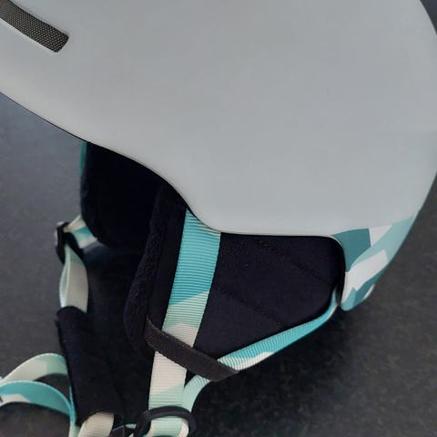 Head Ela skid- och snowboardhjälm i storlek XS/S (52–55 cm). Hjälmen har lätt ytterskal, termisk ventilation och uttagbara öronlappar. Invändigt finns mjuk, turkos vaddering med meshpaneler för luftgenomströmning. Justerbart hakspänne och passformssystem (2D Fit). Hjälmen är godkänd enligt CE EN 1077:2007 klass B och ASTM F2040-11.