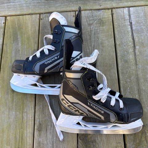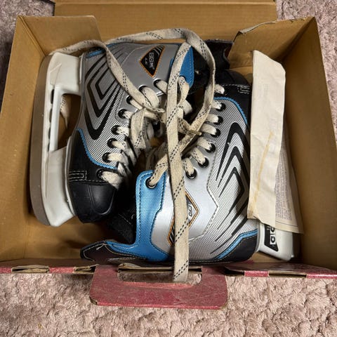 Mega C-Series ishockeyskridskor för barn i storlek 31. Färg övervägande svart med ljusa snören. Skridskorna har förstärkt yttermaterial i nylon för stabilitet och stöd runt fotleden. Anatomiskt formad och förstärkt plös samt innersula i EVA för bättre passform och komfort. Yttersulan är lågprofil och anpassad för ishockeyspel. Passar för barn som åker skridskor och spelar ishockey på is.