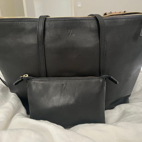 Victoria's Secret handväska för kvinna i fuskläder med leopardmönster. Väskan har två bärhandtag upptill och en ytterficka med dragkedja framtill. Metallbricka med logotyp på framsidan samt VS-logga på dragkedjans löpare. Invändigt finns huvudfack med dragkedja och foder i kontrastfärg. Till väskan hör en mindre svart fuskläderpouch med VS-logga och dragkedja, som kan användas för mindre tillhörigheter som nycklar, kort eller kontanter.