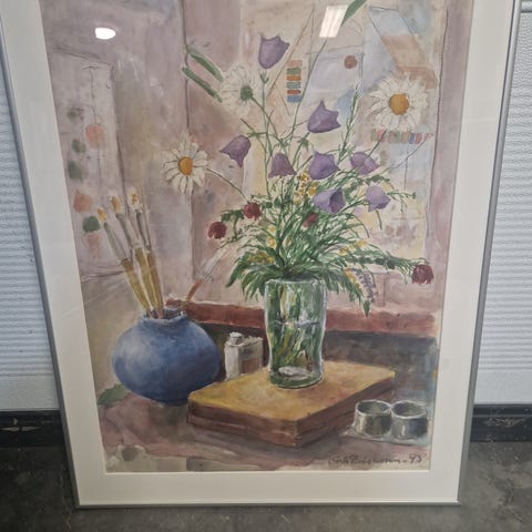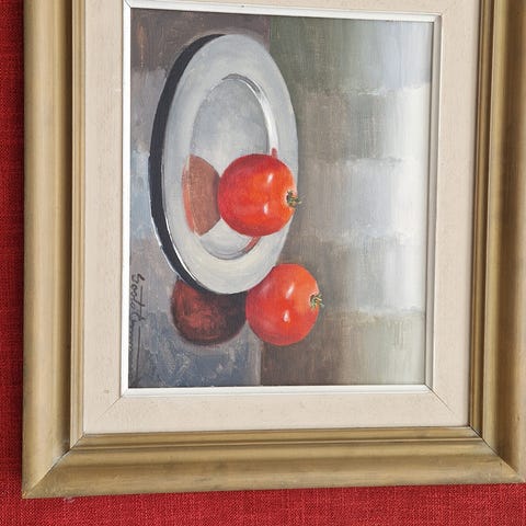 Thomander oljemålning stilleben med fågelmotiv. Målningen visar en hängande fågel mot en varm, rödorange bakgrund. Verket är signerat Thomander i nedre delen av målningen. Tavlan är inramad i en ljus, profilerad ram med passepartout. Lämplig som väggdekoration i exempelvis vardagsrum, hall eller matsal. 85*68 cm inkl. ram