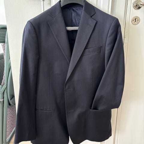 Oscar Jacobson kostym för herr i svart färg. Kavajen är i storlek D104 och byxor storlek 100och tillverkad i polyester54%wool 44 %. Klassisk enkbröstmodell med slag, framfickor och innerfickor. Passar som del av kostym eller som separat kavaj till vardag och mer formella tillfällen.helt nytt aldrig använt