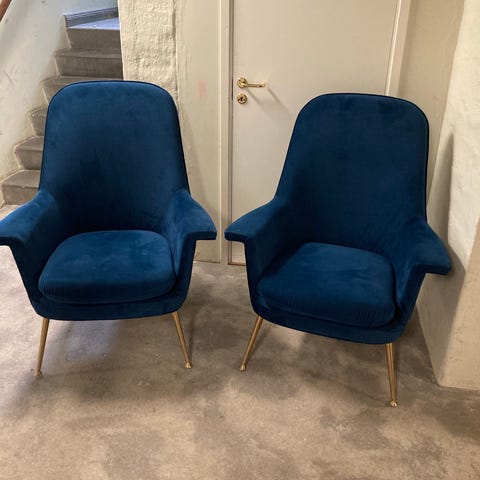 4 st benvita Club fåtöljer från Ikea. Fåtöljerna är hela men det finns en del fläckar i tyget. Säljer därför alla fyra för 500 kr.