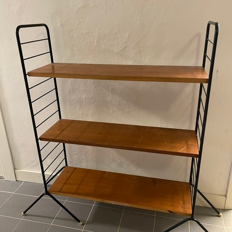 Retro stringhylla från 1950-60 tal med tre hyllplan i teak. Fint skick